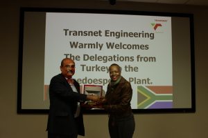 Güney Afrika Cumhuriyeti Johannesburg Türkiye Büyükelçiliği ziyaretimizde, Büyükelçimiz Sayın Elif Çomoğlu Ülgen ve Ticari Ateşemiz Sayın Demet Işıl Karakurt hanımefendi ile Türkiye-G.Afrika ticareti hakkında görüşmeler yaptık. Şirketlerimizi tanıttık ve işbirliği imkanlarımızı değerlendirdik. Daha sonra G.Afrika’nın en büyük şirketlerinden Gibela raylı sistem fabrikası ziyareti yaparak Afrika’nın en büyük raylı sistemler fuarına geçtik. Güney Afrika şirketlerimiz için çok iyi bir pazar olacak, inşallah. Ekibimizde Aselsan, Kardemir D.Ç, Kent Kart, TCDD ve Bağlı ortaklıklar, Raysimaş, Ulusoy Elektrik, Das Lager Rulman San, RC Endüstri, Berdan Civata, BM Makina, Emreray, Transnet, Ankaems gibi 20 firmamız bulunuyor.