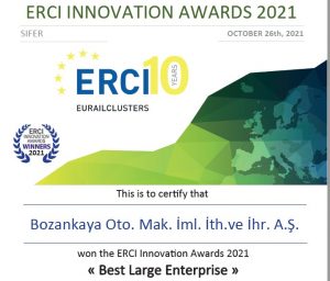 Bu yıl Avrupa Raylı Sistemler Birliği, ERCI, tarafından 26 Ekim 2021 tarihinde Fransa’nın Lille şehrinde düzenlenen SIFER 2021, 7. Raylı Sistemler İnovasyon ödülünü Bozankaya firmamız kazandı.