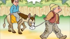 – Dünya tersine döndü galiba! Baksana şu hale ihtiyar adam yerde yürüyor da küçücük çocuk eşeğin üzerinde gidiyor. Ne ayıp şey değil mi ? Diye söylenmeye başlamışlar.