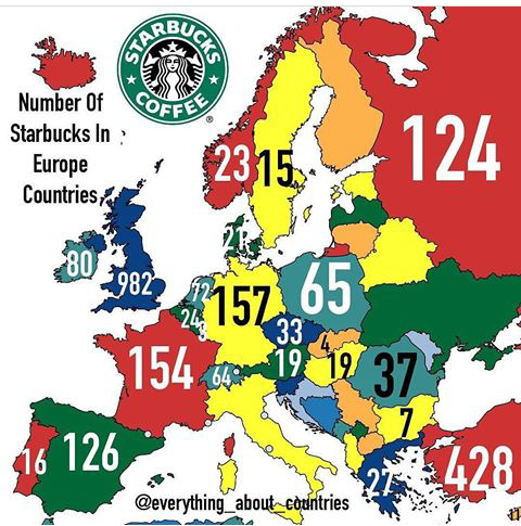 Avrupa Ülkelerindeki Starbucks Sayısı. Türkiye’de son alınan verilere göre şube sayısı 470’ye yükseldi. Türkiye Avrupa’da 2.sırada.