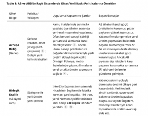 AB’deki başarı faktörlerinin başında, güçlü yerli üreticilerin varlığı gelmektedir. Fransa, Almanya, İtalya, İspanya gibi ülkelerde raylı sistem araçlarının ana tedarikçileri zaten ulusal şirketler olduğundan, kamu alımları doğal bir şekilde ülke içinde üretime yol açmaktadır. Ayrıca AB genelinde demiryolu sanayine yönelik Ar-Ge destekleri (Shift2Rail gibi programlar) ve uluslararası standartlar (ör. karşılıklı işletilebilirlik teknik şartnameleri) sayesinde yerli firmalar teknoloji geliştirme avantajına sahiptir. Başka bir deyişle, AB ülkeleri ofset oranları belirlemese de, sanayi politikaları ile yerli firmaları rekabetçi kılarak ihalelerde başarılı olmalarını sağlamaktadır.