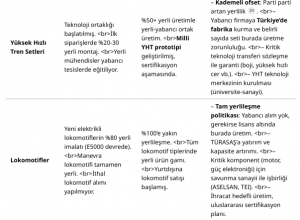 gövde tasarımı, aktif eğilme (tilting) teknolojisi (varsa) vb. Bu konularda Türk mühendislerin
