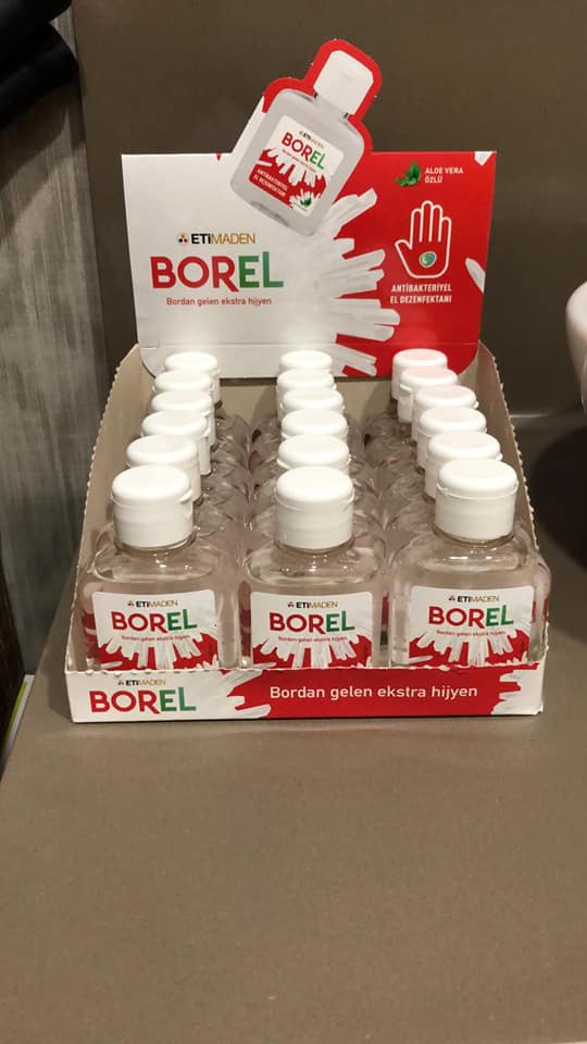 Eti Maden tarafından yerli ve milli imkanlarla üretilen bor katkılı el dezenfektanımız BOREL, haftaya marketlerde yerini alacak.
