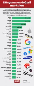 Değerini geçen yıla göre yüzde 35 artırarak 355 milyar dolara çıkaran Apple “Dünyanın en değerli markası” unvanını korumayı başardı. Apple, 2021 araştırmasında da 263,4 milyar dolarla ilk sırada yer almıştı.