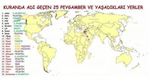 Kur’ân-ı Kerim’de ismi geçen ve geçmeyen peygamberlerin hemen hemen hepsi coğrafî tabiriyle Akdeniz Havzası (Suriye, Lübnan, Filistin, İsrail, Mısır), Mezopotamya (Irak, Ürdün, İran’ın bir kısmı) ve Arap Yarımadasında çıkmış ve tebliğ vazifelerini burada yürütmüşlerdir. Bütün tarihi kayıtlar gösteriyor ki, insanlığın ilk yerleşim yeri, Mezopotamya ve Maveraünnehir bölgesidir.