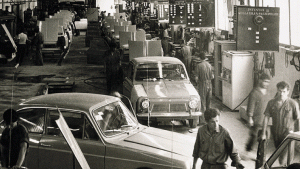 Türkiyenin ilk yerli ve milli otomobili olan Anadol’un üretim bantları.