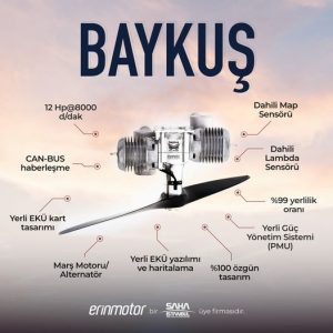 Erin motor tarafından geliştirilen Baykuş adlı İHA motoru 12 beygir gücünde.